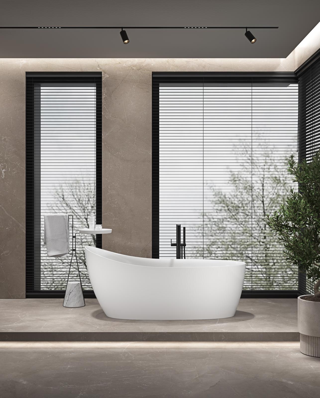 Elevate your bathing experience with this elegantly crafted bathtub, where sophistication meets serenity. Featuring graceful curves, a choice of high-gloss or matte finish, and a deep, contoured basin designed for full immersion. Crafted from premium materials such as high-grade acrylic, its seamless silhouette and refined detailing exude modern opulence. Whether freestanding or set against a statement wall, this bathtub invites you to unwind in style, blending comfort with understated glamour.