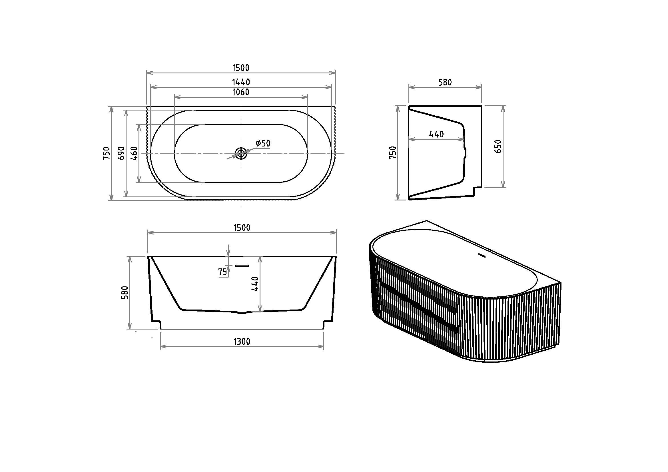 Introducing Gabby, a beautifully crafted fluted oval acrylic bathtub that redefines elegance with a modern twist. Designed to be the centrepiece of your bathroom sanctuary, Gabby features a gently contoured oval design wrapped in a refined fluted exterior bringing texture, style, and a sense of timeless sophistication to your space. Made from high-grade, lightweight acrylic, Gabby offers exceptional durability, easy maintenance, and superior heat retention for long, luxurious soaks. Its smooth, high-gloss interior provides ergonomic comfort, while the sculptural fluted design adds depth and dimension to both contemporary and classic interiors.